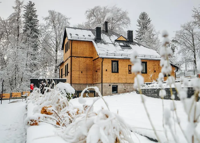 Das 8-Zimmer-Rezydencja Harmony Land Vip Z Sauna I Jacuzzi By Royal Aparts Schreiberhau befindet sich in Schreiberhau etwa 20 Fußminuten vom Skigebiet SkiArena Szrenica entfernt, und verwöhnt seine Gäste mit einem Jacuzzi und einer Sauna. Außerdem ist das Apartment in nur 300 Meter Entfernung vom Vergnügungspark Esplanada gelegen.